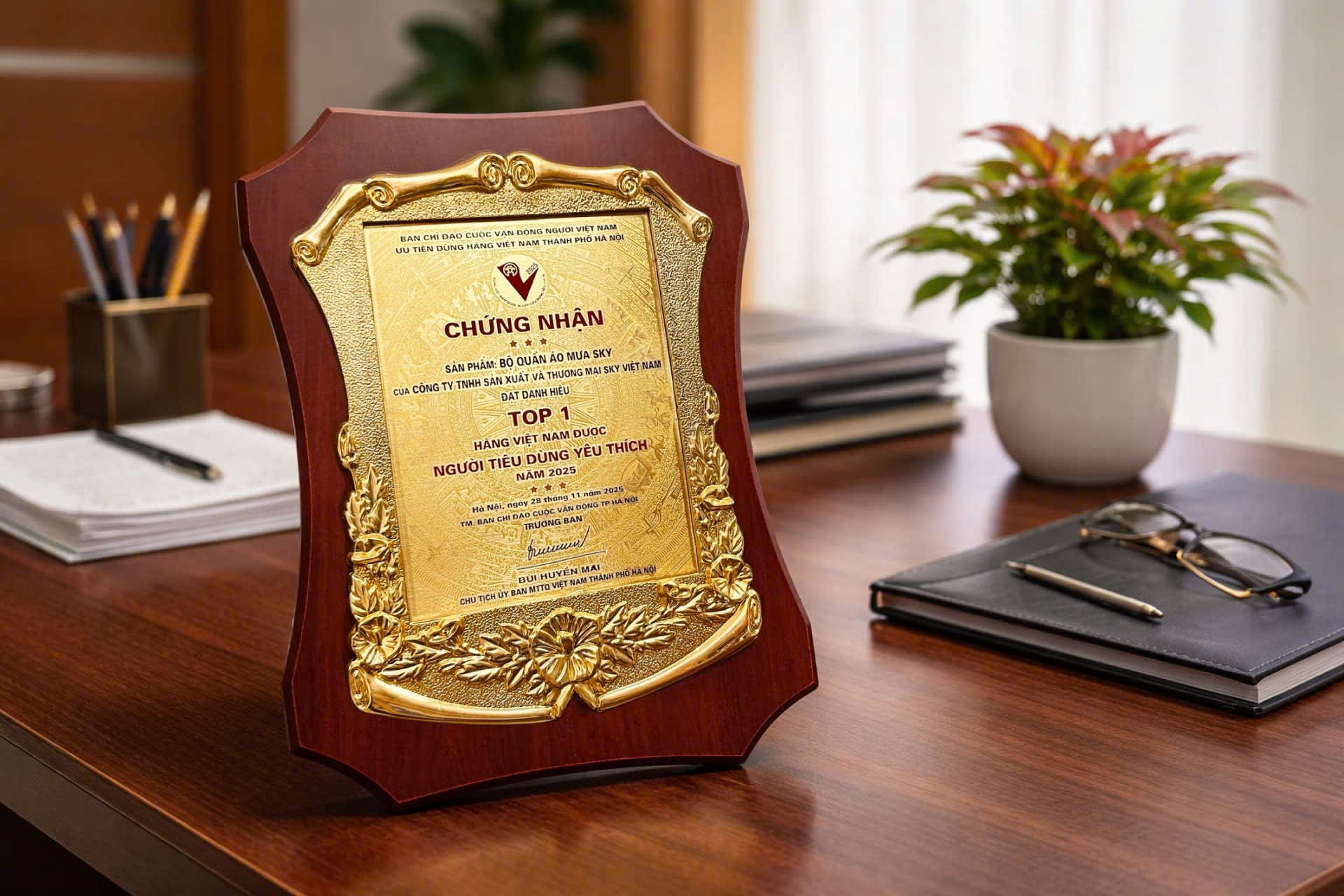 Trong bối cảnh thị trường quà tặng doanh nghiệp ngày càng cạnh tranh, việc một thương hiệu đạt được sự công nhận từ người tiêu dùng là minh chứng rõ ràng cho chất lượng và uy tín. Năm 2025, Áo mưa SKY đã chính thức ghi dấu ấn khi đạt danh hiệu Top 1 Hàng Việt Nam được người tiêu dùng yêu thích, khẳng định vị thế hàng đầu trong ngành sản xuất áo mưa tại Việt Nam.